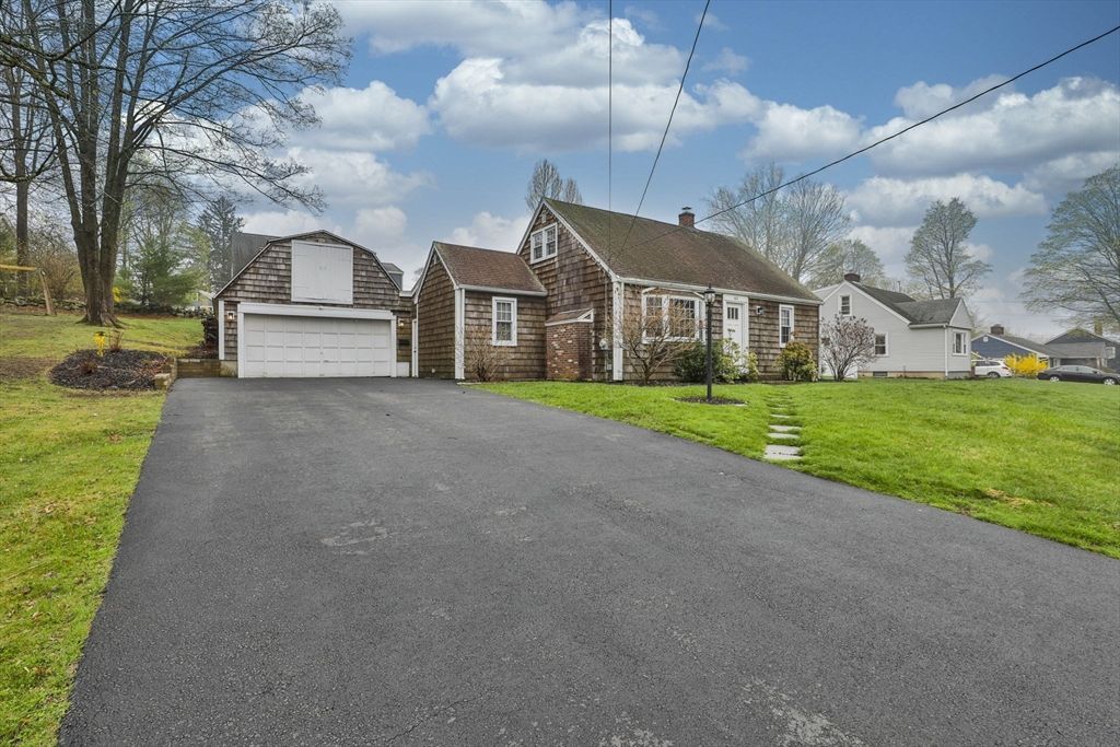 Classic cape style home on a lovely dead end street! This property boasts a grassy lawn, 2 car garage and a covered back porch. Inside there is ample room to spread out from the sun filled front living room with wood burning fireplace! The rear of the home boasts a practical kitchen with stainless appliances and a dining room. There is a first floor bedroom and full bathroom down the hall as well as a large family room with a wood stove. Upstairs are 2 nicely sized bedrooms. Come take a look.
